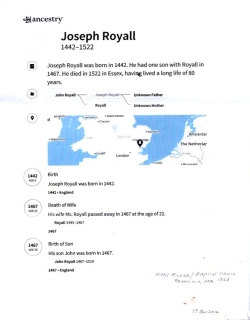 (Added Bert Hoyt's recent Research into the Royall, Miller, Denio, Hoyt Outline descendants Report in [.pdf] format],