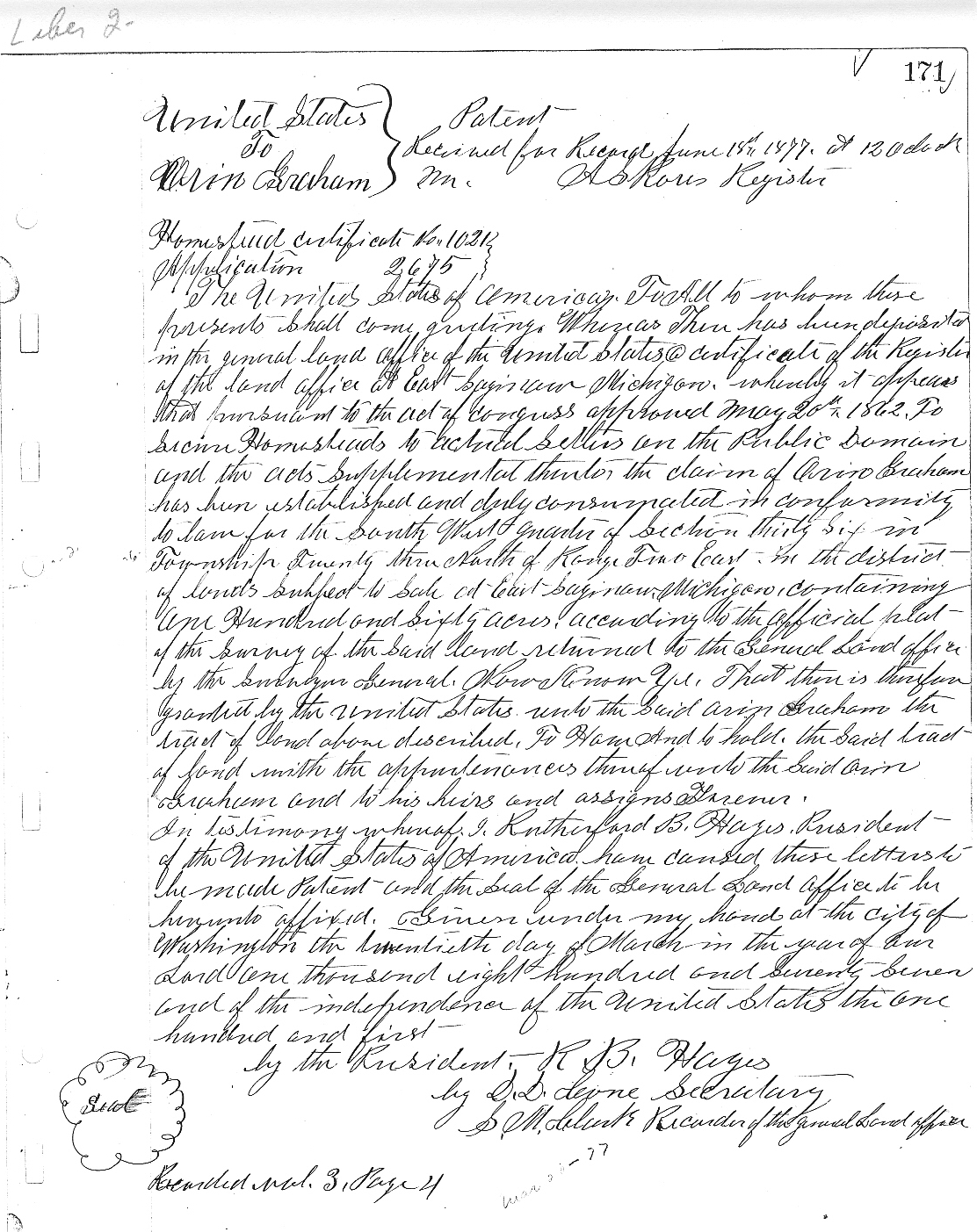 Allan-S-Rose_Patent-Graham-Ogemaw-County_06-18-1877_Register_liber2page171.jpg